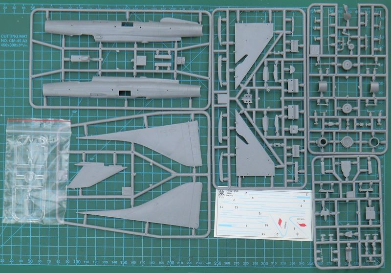 Bausatz: Modelsvit ist ein neuer Stern am Modellbauhimmel. Neben ein paar 48er Bausätzen gibt es unter dem Label u.a. auch eine An-124 Ruslan. Bei der exotischen A-144-1 Analog in 1/72 handelt es sich um einen limitierten Short-Run-Kit. In dem praktischen Stülpkarton befinden sich gut verpackt fünf hellgraue Spritzlinge mit 83 Teilen, ein Klarsichtrahmen mit fünf Teilen, ein Decalbogen und die Bauanleitung. Die Teile sind sauber abgespritzt. Man erkennt aber einen Bausatz mit sehr feinen Details, wie man sie nicht so erwartet hätte. Hier wird einfach die Passung entscheiden. Der Aufbau des Bausatzes ist sehr sinnvoll. Hier waren Modellbauer am Werk!