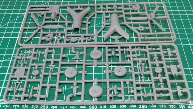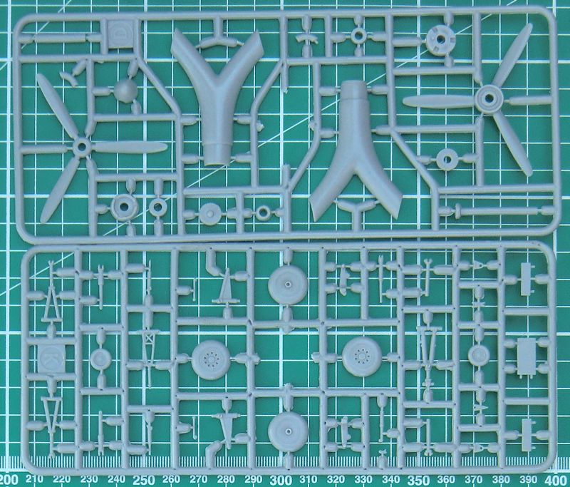 Aus neun Teilen entsteht die gegenläufige Luftschraube. Ein paar Antennen gibt es noch für das Äußere des Modells.