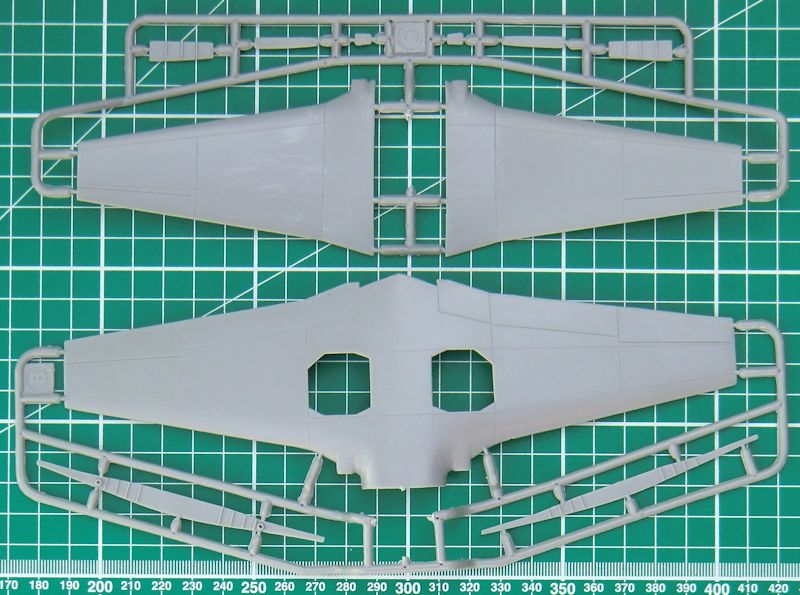 Für die dreiteilige Tragfläche gibt es zur Stabilisierung zwei Holme. Diese dienen zum Teil auch als Innenkanten der Fahrwerksschächte. Toll ist die Tatsache, dass es bei allen Rudern scharfe Hinterkanten gibt. Bei Modelsvit denkt man jedenfalls an die Modellbauer. Für das Zusammenbauen des Hauptfahrwerks sollte man bisschen Zeit mitbringen. Das ist recht komplex. Die Fahrwerksklappen besitzen innen schöne Strukturen.