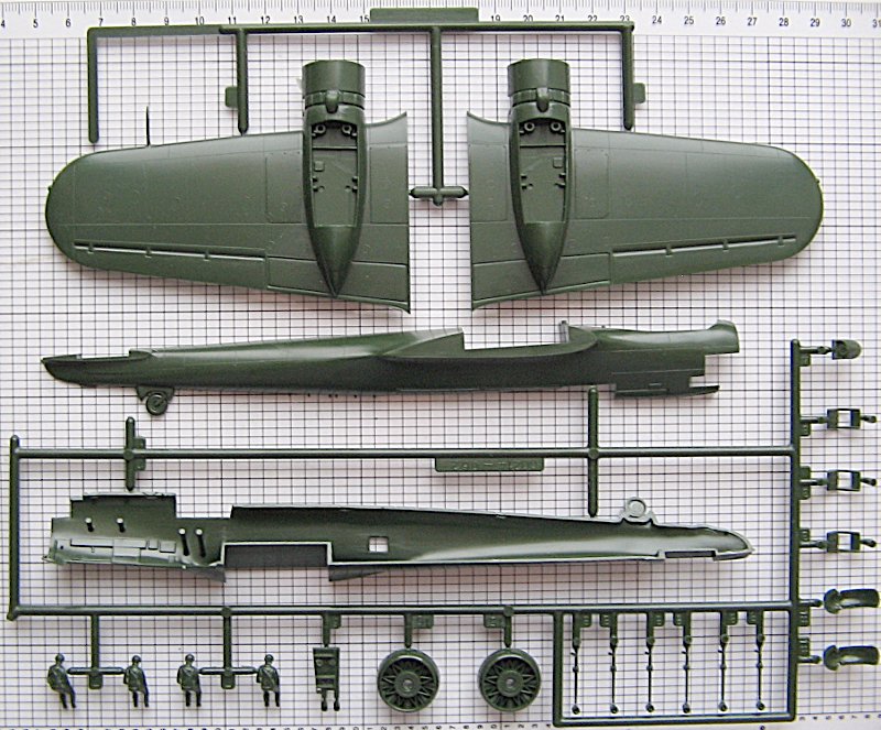 Der vorliegende Bausatz stellt einen unerwartet detaillierten Kit in Raised-Panel-Ausführung dar, der bereits eine ausreichend umfassende Cockpitinneneinrichtung besitzt, die zwar etwas vereinfacht, aber dennoch stimmig ist und relativ problemlos selbst erweitert werden kann. Eigentlich fehlt nur teilweise der Cockpitboden. Von dieser Kleinigkeit abgesehen ist der Rest des Flugzeugs sehr ordentlich wiedergegeben worden. Zum Beispiel sind selbst einige angedeutete Leitungsstränge in den Fahrwerkschächten vorhanden! Und auch die Klarsichtteile sind für einen Bausatz dieses Alters erstaunlich klar und verzerrungsfrei ausgefallen.