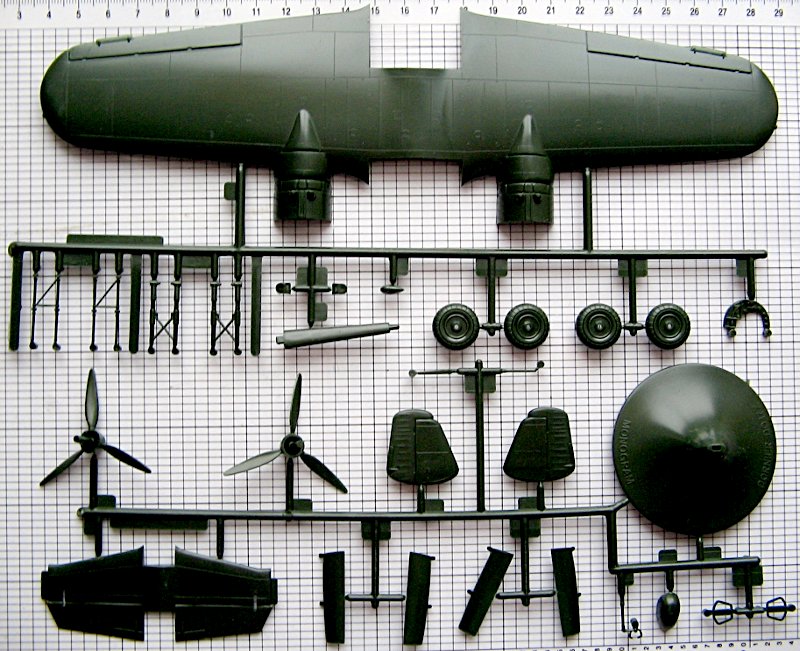 Ferner gibt es noch recht authentisch wirkende Pilotenfiguren und an den Motorengondeln-Fronten auch noch ganz passable Triebwerksnachbildungen. Lediglich das ausgefahren dargestellte, weil mit den Rumpfhälften ausgeformte Spornrad stört den ansonsten sehr soliden Gesamteindruck etwas, da es seinetwegen etwas schwierig wird sein Modell mit eingezogenen Fahrwerk zu bauen. Während die die Abziehbilder erwartungsgemäß, wie bei Revell eigentlich üblich, höchstwahrscheinlich auch bei diesem Bausatz wieder makellos sein werden. Leider gelang es mir in diesem Falle nämlich nicht, selbst unter Einschaltung der stets hilfsbereiten Mrs. Pannarale von Revell-Monogram in den USA, einen Einblick in die aktuelle Bauanleitung bekommen zu können. Weshalb ich bei dieser Besprechung nur auf meine alte Original-Ausgabe zurückgreifen kann und nicht konkret weiß welche beiden Maschinen den jetzt aus der neuen 2011er Wiederauflage erstellt werden können.