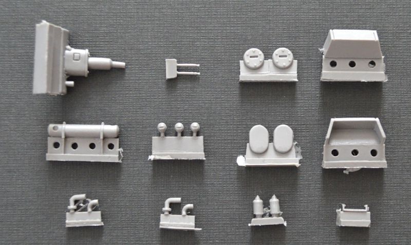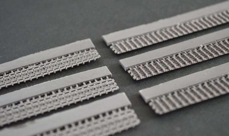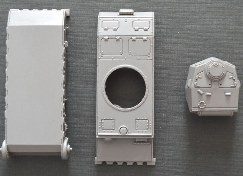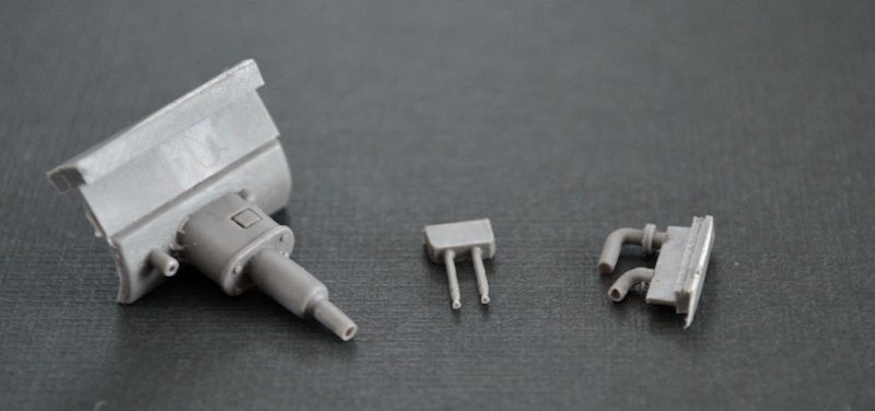 Mir gefällt besonders, dass alle Teile so sauber und detailliert ausgeführt sind. Alle Rohre, wie die KwK, MGs und Auspuffe, verfügen bereits über Öffnungen. Die Fahrersichtluke (Teil 31, in der Bauanleitung leider nicht erwähnt) kann geöffnet oder geschlossen dargestellt und die KwK in einem beliebigen Winkel angebracht werden. Ein paar fragile Teilchen sind doppelt vorhanden. So wandert einer der drei schön ausgeführten Tarnbeleuchtung-Scheinwerfer dankbarer Weise in die Restekiste. Die fotogeätzten Gitter fallen filigran aus und wirken nicht zu dick. Die Nebelwurftöpfe am Heck sind mit einer sehr dünnen Abdeckung versehen. Bei mir ist sie leider etwas eingedrückt, was aber behebbar ist. Was mir hingegen nicht gefällt, ist, dass alle Luken geschlossen sind, da der Turm im Ganzen gegossen worden ist. Die stark ausgeprägten Gravuren bleiben wohl Geschmackssache, erleichtern aber immerhin die Bemalung.