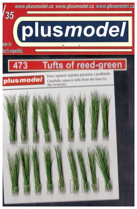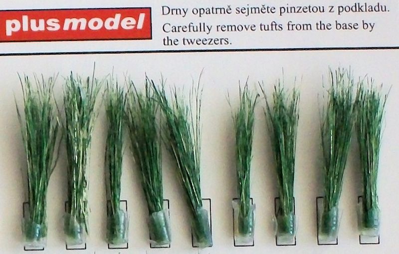 Das Set beinhaltet achtzehn Büschel grünes Schilf oder Röhricht als Ladegut für Modelle und Dioramen. Sie werden in einem stabilen Klarsichtkarton verpackt geliefert. Die Bündel sind ca. 35 mm lang inklusive eines 5 mm starken, 3 mm durchmessendem Klebesockels.
