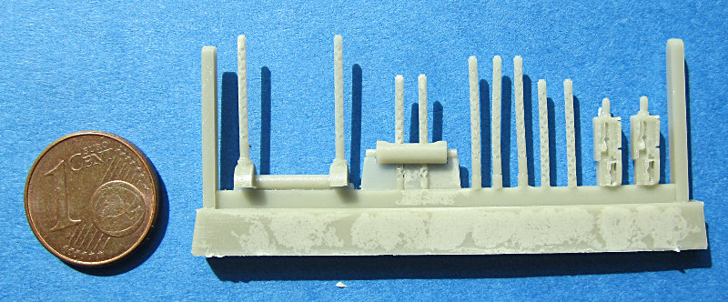 Quickboost hat sich auch diesmal bemüht, die Chirurgie auf ein Minimum zu beschränken. Dennoch müssen die Läufe an den Bausatzteilen 67 (2 mal) und 70 (1x Turm-Zwilling) abgesägt und die Resinläufe angeklebt werden, die übrigen werden ersetzt. Bei mir ist lediglich ein Lauf leicht gebogen, der Rest ist einwandfrei. Die Mündungen sind natürlich hohl gegossen.