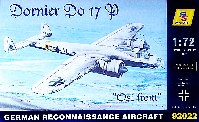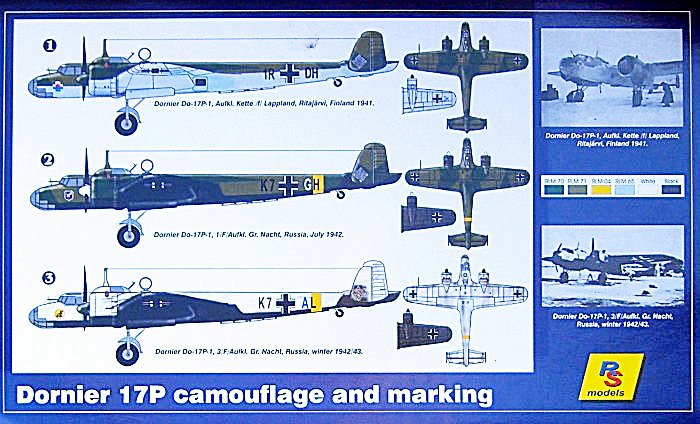 Vorbild: Die Entwicklung der Do 17 begann als Lastenflugzeug im Auftrage der Reichswehr. Die Tarnung als Verkehrsflugzeug für die Luft Hansa hatte nur eine geringe Bedeutung. Am 23. November startete die Do 17 V1 mir Zentralleitwerk zum Erstflug. Als erste Aufklärer-Version flog die Do 17 F mit BMW VI - Reihenmotoren, die Bomberversion war die Do 17 E. 1937 entstand als Weiterentwicklung die Do 17 M/P - Reihe. Hauptunterschiede waren die Triebwerke, BRAMO 323 für die M-Reihe und für die P-Reihe war es der BMW 132 N, außerdem veränderte Landeklappen, selbstdichtende Tanks, Metallbeplankung der Tragfläche usw. Die Aufklärerversion Do 17 P flog erstmals am 18. Juni 1938 und war danach der Aufklärer der Luftwaffe. Ersetzt wurden diese Aufklärer erst durch die Ju 88 D. An der Ostfront wurden die Do 17 P noch 1943 als Nachtaufklärer eingesetzt, ansonsten an den Flugschulen.