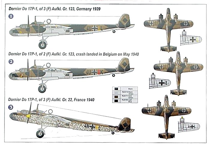 Vorbild: Die Entwicklung der Do 17 begann als Lastenflugzeug im Auftrage der Reichswehr. Die Tarnung als Verkehrsflugzeug für die Luft Hansa hatte nur eine geringe Bedeutung. Am 23. November 1934 startete die Do 17 V1 mit Zentralleitwerk zum Erstflug. Als erste Bomberversion flog die Do 17 E mit BMW Reihenmotoren. Ihr Gegenstück als Aufklärer war die Do 17 F. Die Do 17 M/P Reihe entstand ab 1937 als Ablösemuster für die E/F-Reihe. Hauptunterschiede waren das Triebwerk (jetzt BRAMO 323 bei der M und BMW 132 beim Aufklärer P), veränderte Landeklappen, selbstdichtende Tanks, Metallbeplankung der Tragfläche u.a. Die Aufklärerversion Do 17 P flog erstmals am 18. Juni 1938 und war danach der Aufklärer der Luftwaffe. Ersetzt wurden diese Aufklärer erst durch die Ju 88 D. An der Ostfront wurden die Do 17 P noch 1943 als Nachtaufklärer eingesetzt, ansonsten an den Flugschulen.