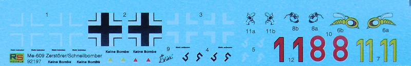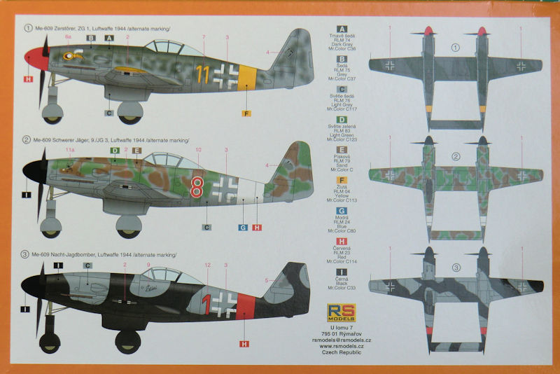 Der kleine Decalbogen ist tadellos gedruckt aber total fiktiv. Bei den Farbangaben wird auf die RLM-Farben und das Farbsystem von Mr.Color verwiesen.