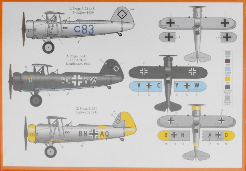 Vorbild: Die Praga E-241 war eine Weiterentwicklung des erfolgreichen Trainers Praga BH-41. Über die Entwicklungsstufe mit Dieselmotor (ZOD-260) E-141 entstand die neue Version E-241 mit dem Walter Pollux II-Triebwerk. Im Jahre 1936 hatte der erste Prototyp seinen Erstflug in der CSR. Insgesamt wurden 80 Exemplare produziert. Diese wurden in der tschechoslowakischen Luftwaffe bis zum März 1939 genutzt.