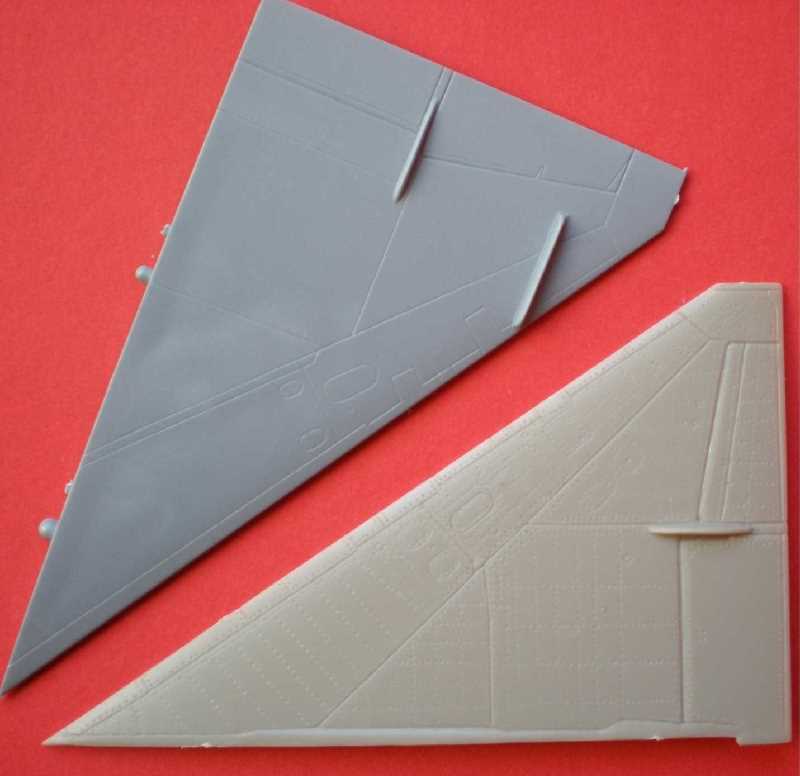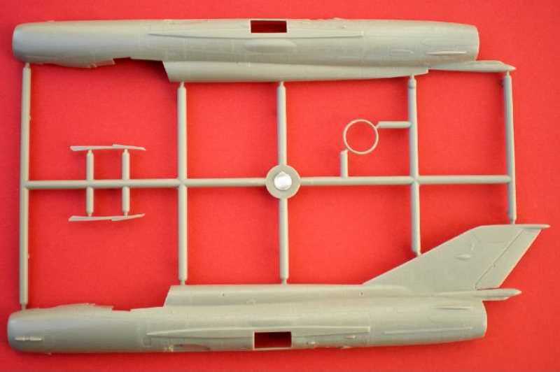 Die übrigen Teile entsprechen heutigen Anforderungen: die Fahrwrkschächte sind stimmig, das Triebwerk hat eine Innengestaltung und die ringförmige Ausführung von Bug und Heck vermeidet hier Nahtstellen, die Konusgestaltung ist bisher die gelungenste. Die Tragflächen, das Höhenleitwerk sowie das Seitenleitwerk bestehen aus einem Stück. Die Grenzschichtzäune sind aus Metall. Die für die MiG-21bis beiliegenden Teile wandern in die Restekiste, gleiches gilt für die Ätzteile. Einziges Manko sind die fehlenden Außenlasten.