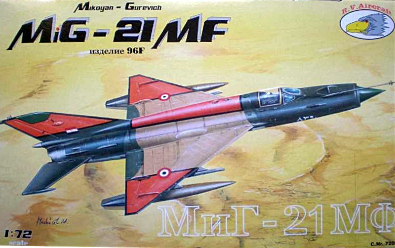 Bausatz: KP brachte Anfang der achtziger Jahre die lange Zeit einzige MiG-21MF in 1/72 auf den Markt. Die zehn Jahre später folgenden Kits von Fujimi setzten mit ihrer Fertigungsqualität Maßstäbe, boten aber (entgegen der Schachteldeco) nie eine brauchbare MiG-21MF. R.V. Aircraft legt nun die MiG-21 der späten Muster vor. Der SMT folgte die MiG-21MF.
