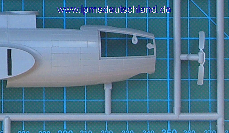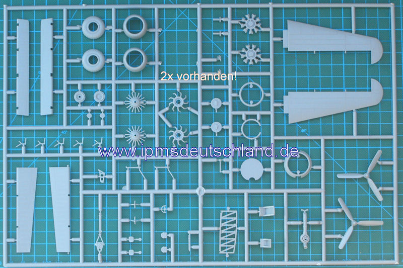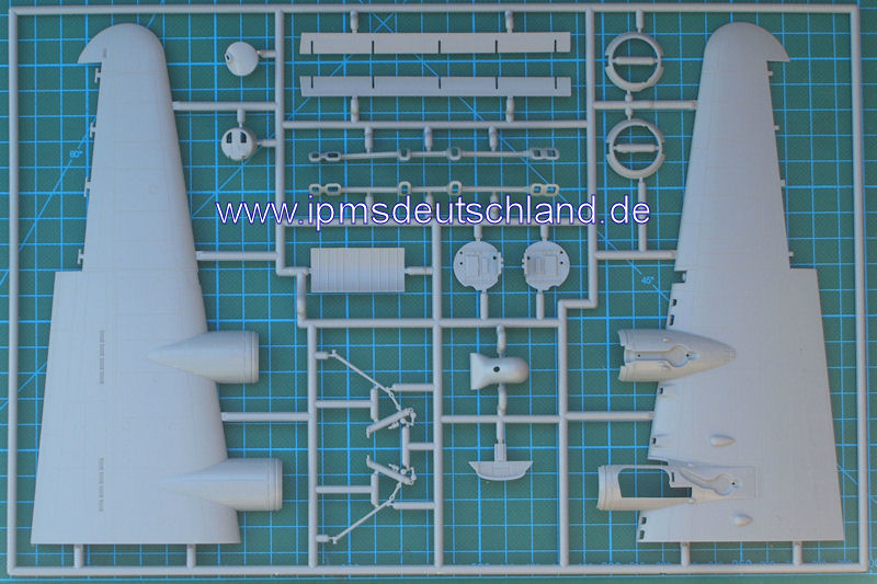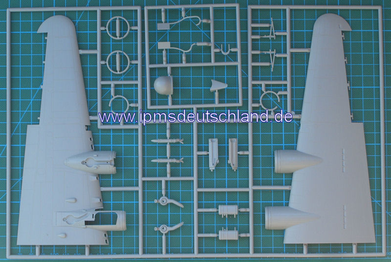 Die Motore und die Turbolader sind ordentlich detailliert und man hat nicht nur die Lufteinläufe an den Tragflächenvorderkanten durchbrochen, sondern es gibt auch noch ein Bauteil welches man von innen in die Fläche klebt. Dann sieht es nicht so primitiv aus. Übrigens kann aus diesen Bauteilen auch eine deutsche Beutemaschine entstehen...