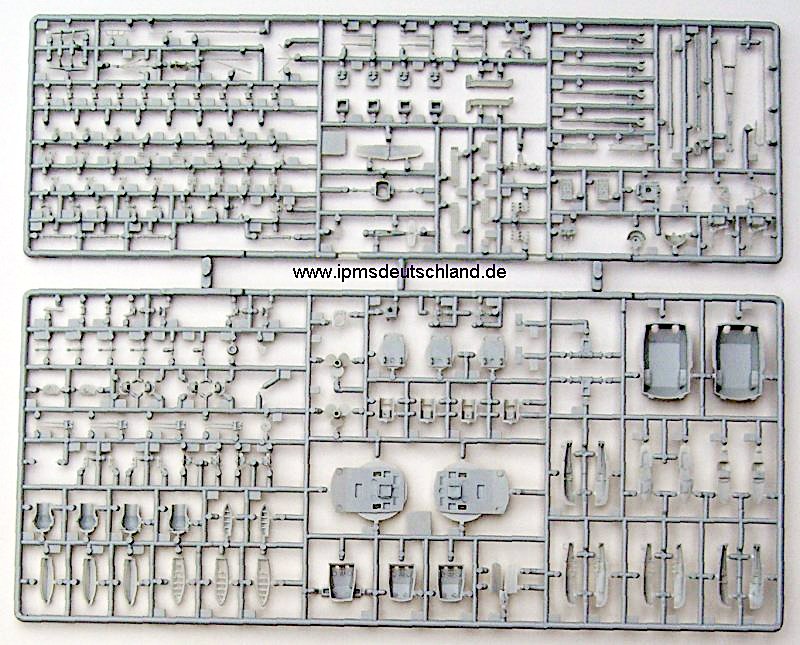 Die Bismarck ist eine Bausatzneuheit in 1/350. Es handelt sich hierbei um Spritzlinge aus einem sog. Testshot. Die Teile dienen nur der Übersicht. Details werden noch geändert. Interessant finde ich die Glasteile, die ich in diesem Maßstab nicht erwartet hätte. Revell hat auch die Arado Ar 196 Bordflugzeuge nicht vergessen.