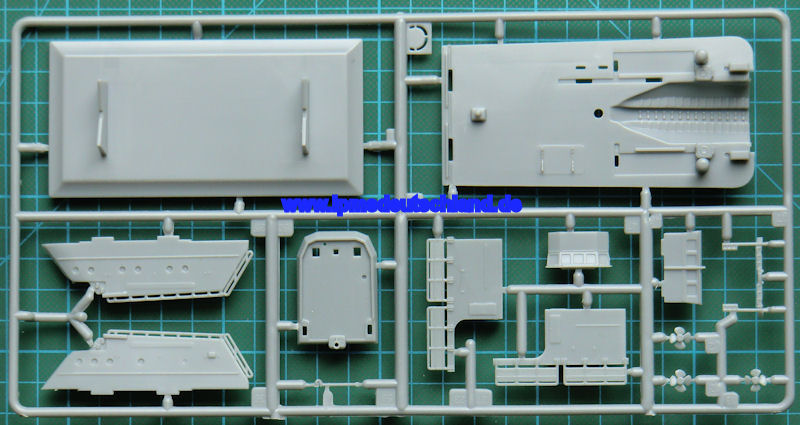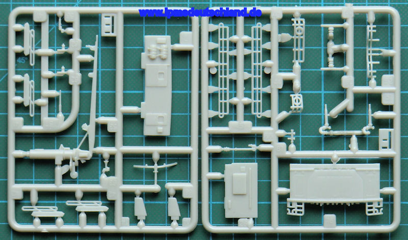 Hierbei handelt es sich um einen fast finalen Bausatz. Dieser besteht aus sechs hellgrauen Spritzlingen mit insgesamt 78 Bauteilen, einem kleinen Decalbogen und einer übersichtlichen Bauanleitung. Klarsichtteile sind nicht vorhanden.