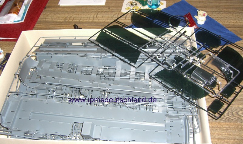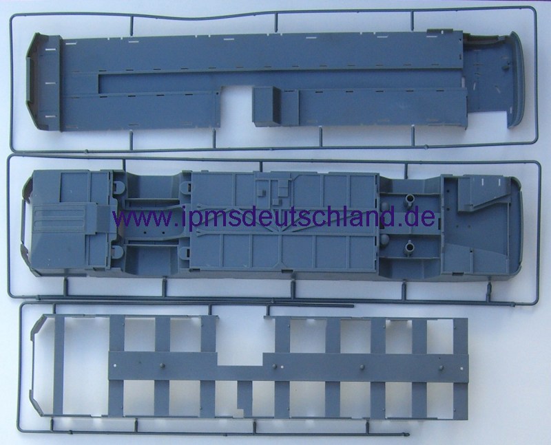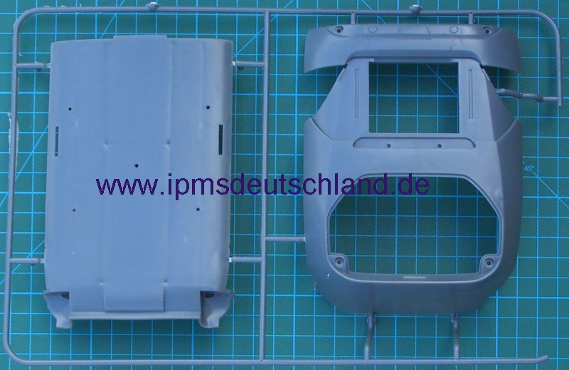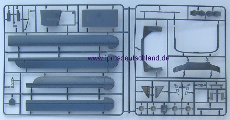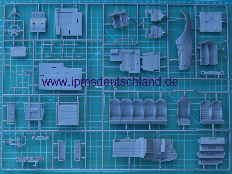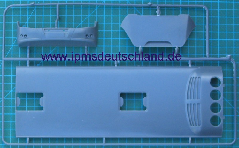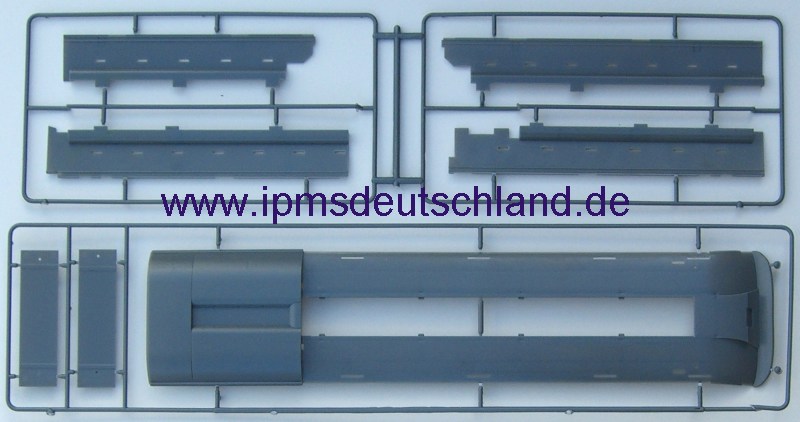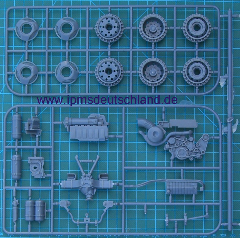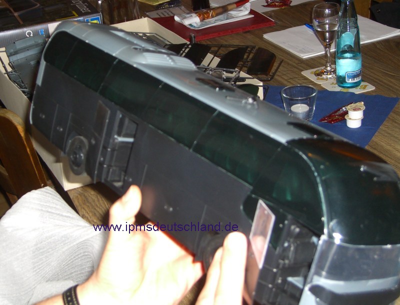 Der erste Eindruck dieses aus Testspritzlingen zusammengebauten Modells war sehr gut. Es wird neben den beiden zu öffnenden Türen eine Inneneinrichtung und einen Motor geben. Hier können sich Detailfreaks austoben. Die Verglasung wird eine Farbe entsprechend des Vorbilds bekommen.