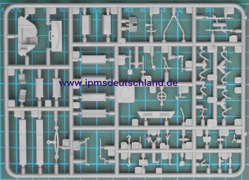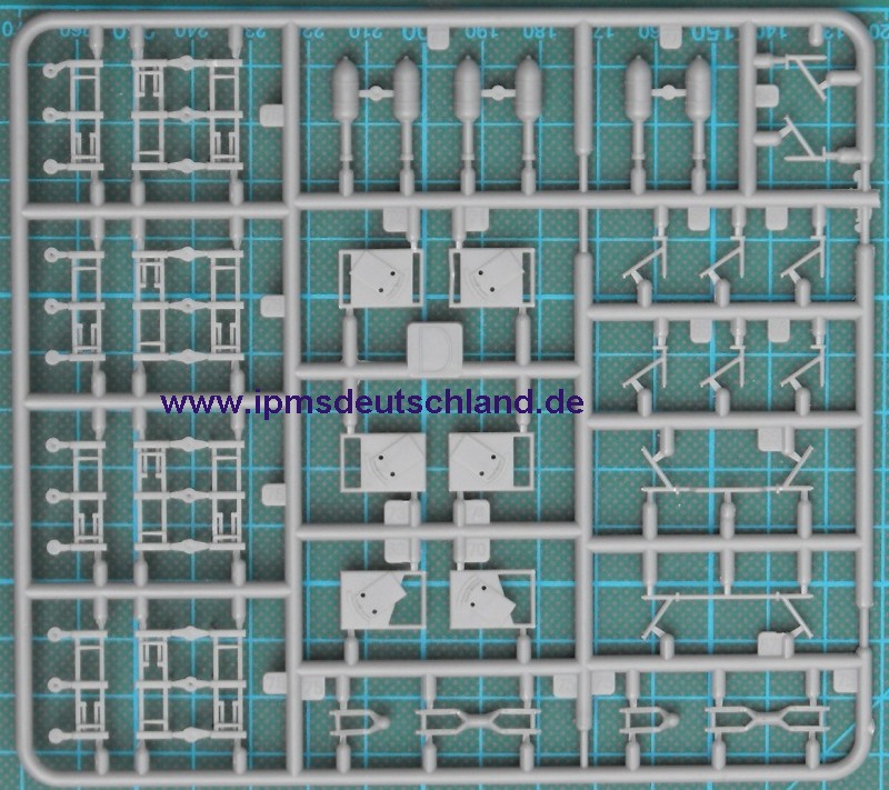 Ein Spritzling ist für den Wurfrahmen und die dazugehörende Munition. Alle Teile sind sehr fein und ausreichend detailliert. Die MGs sind gut getroffen.