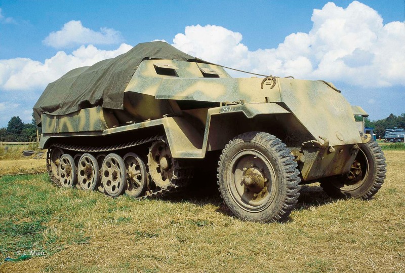 Vorbild: Das Sd.Kfz. 251 entstand aufgrund einer Forderung zur Motorisierung der Panzerbegleitinfanterie. Es stellte eine leicht gepanzerte Ausführung der 3 t Halbkette da. Ab 1937 begannen die Vorarbeiten und 1939 wurden die ersten Fahrzeuge ausgeliefert. Die beiden ersten Ausführungen A und B wurden in relativ geringen Stückzahlen gebaut. Als erste Großserienversion kann man die Ausführung C bezeichnen. Später wurde die Ausführung D gebaut, die ein deutlich produktionstechnisch vereinfachtes Fahrzeug darstellte.