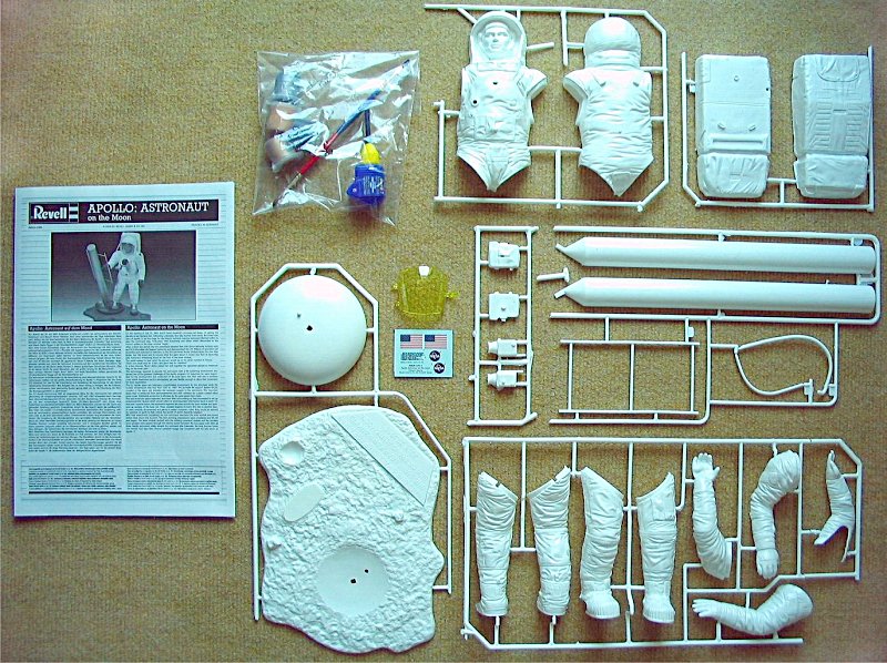 Ein wahres Highlight in meinen Augen, der Astronaut von REVELL. Die Halbschalen des Rumpfes sind viel dünner, als ich es bei einem Kit dieses Alters erwartet hätte. Das Gesicht ist sehr realistisch, auch wenn ich mir nicht sicher bin, ob es wirklich Neil Armstrong zeigt. Experten werden sicher noch das ein oder andere Teil verbessern können, im großen und ganzen aber ist diese Figur ein tolles Stück Zeitgeschichte mit ausreichend dargestellter Oberflächenstruktur!