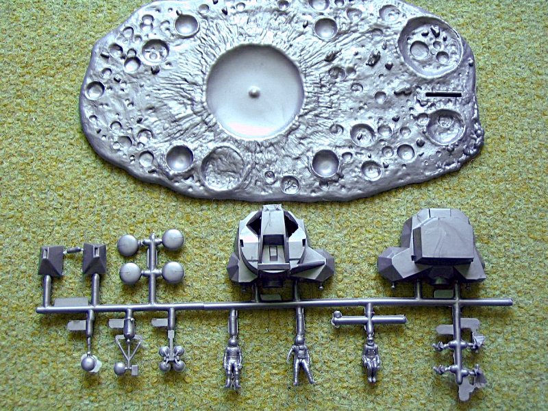 Dieses Set ist identisch mit dem in der Saturn V Box. Wer also nur Interesse an der eigentlichen Mondfähre und dem Orbiter hat, sollte hier zugreifen. Mit dabei, ein Stück Mondoberfläche mit Kratern, auf dem die Eagle "landen" kann, während die Columbia, gehalten von einem geschwungenen Träger, darüber zu schweben scheint.