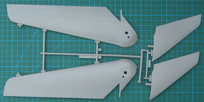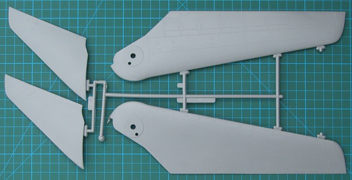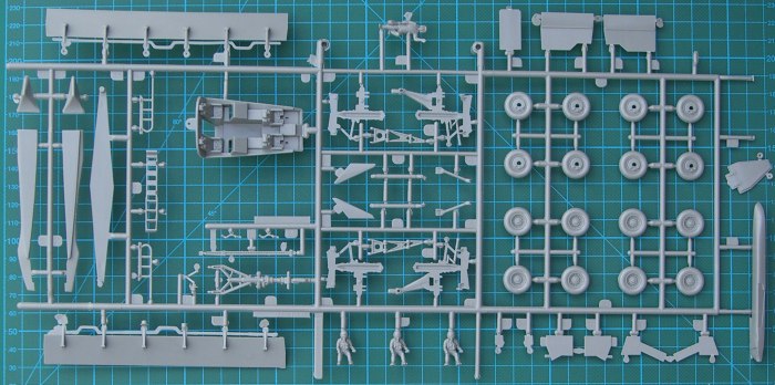 Der Bausatz bietet ein rustikales Cockpit mit vier Besatzungsfiguren. Die Tragflächen können verstellbar montiert werden. Als gelungen möchte ich das Fahrwerk bezeichnen. Es ist recht komplex wiedergegeben.