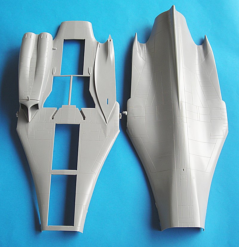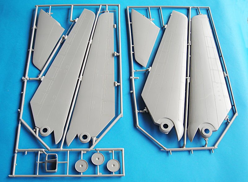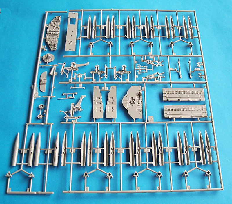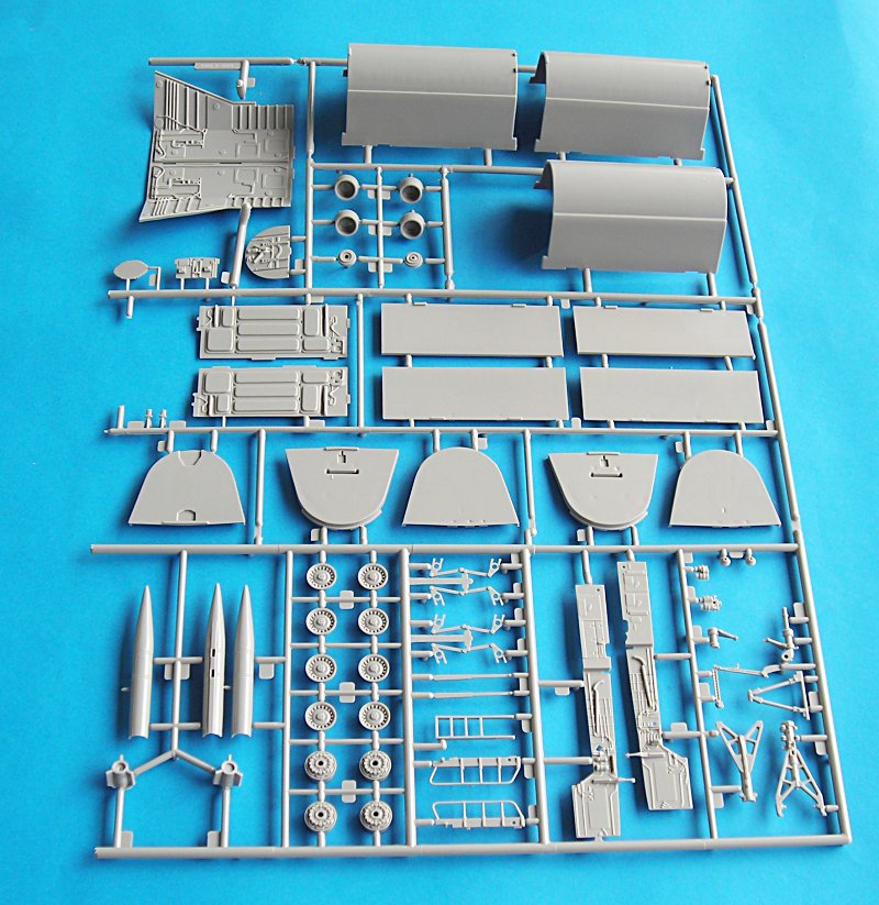 Die Spritzlinge sind bei mir seltsam zerteilt und es sind auch schon einige Teile abgebrochen, jedoch ist keines schwerwiegend beschädigt. Die Gravuren sind recht breit ausgeführt, was man jedoch durch eine Schicht Primer abmildern kann. Außerdem wirkt es durch die Größe des Modells nicht wirklich übertrieben. Das Cockpit ist recht gut dargestellt und auch sonst ist der Bausatz gut detailliert, aber bekanntlich gibt es ja wenig, das nicht noch verbessert werden kann. Die Schubdüsen gibt es z.B. auch von Zubehörherstellern (unfeathered), wodurch man deren Finesse noch steigern kann.