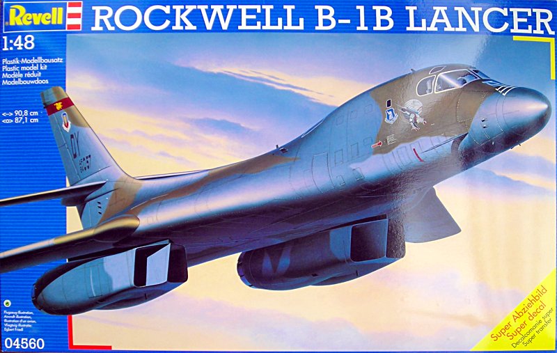Bausatz: Im Spätherbst 2006 hat Revell überraschend den großen "Knochen" (B-1=Bone) wieder aufgelegt. Nach Volkers Angaben in seinem Bericht zum gerade aufgelegten 1/72er Bausatz ist der 48er Kit die korrekteste B-1B, die es derzeit als Modell gibt. Wie dem auch sei, dieses Modell ist riesig, auch wenn der "Truck-und-Trailer-Karton" nicht berstend voll ist. Für den Bau sollte man sich also frisch mit Klebstoff und Farben eindecken, denn man wird reichlich davon verbrauchen.