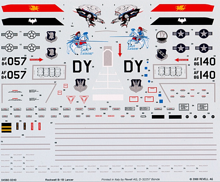 Vorbild: Die Entwicklung der Rockwell (seit 1996 Boeing North American) B-1B reicht sehr lange zurück. Es begann mit der Forderung der USAF 1965 für ein strategisches Flugzeug, das das überzüchtete B-70 Valkyrie Programm ersetzen sollte. Da die USAF Strukturprobleme bei ihren B-52 Bombern befürchtete, beschaffte sie als Schnelllösung die General Dynamics FB-111A. Bei Rockwell lief die Entwicklung weiter und ein vorläufiges Ende kam mit einem Beschluss des USA Präsidenten Jimmy Carters 1977, der eine Einstellung des B-1A Programms verfügte, nachdem schon seit Oktober 1974 das erste Exemplar flog. Es folgte eine Umkonstruktion als Lenkwaffenträger für Tiefangriffe. Unter Ronald Reagan erhielt Rockwell einen Auftrag über 100 B-1B (ursprünglich wollte die USAF 240 B-1A). Die zweite und vierte B-1A wurden bei Rockwell zu Prototypen der B-1B. Somit erhob sich die erste B-1B am 23. März 1983 in die Luft. Die erste neu produzierte B-1B war im September 1984 fertig. 1990 erhielt die B-1B den offiziellen Namen Lancer, der von der Truppe ignoriert wird. Dort heißt sie Bone (von B-One). Die USAF plant die B-1B mit 89 Exemplaren bis 2018 in Dienst zu halten. Einsätze erlebte die B-1B u.a. während der Operationen gegen den Irak.