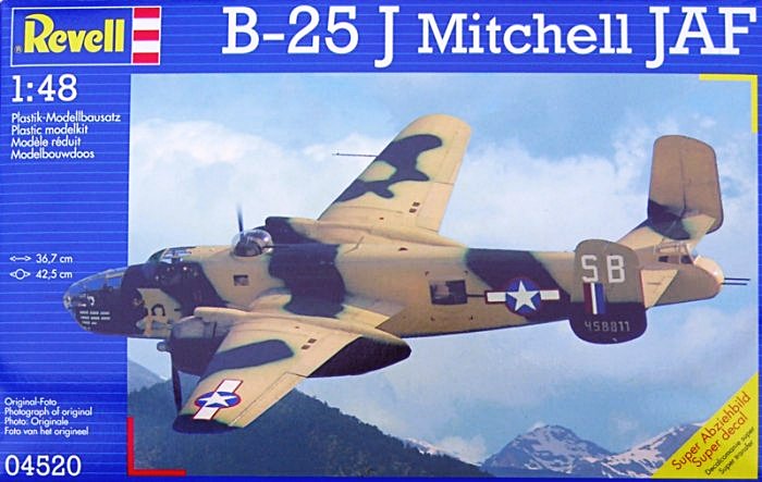 Vorbild: 1938 veröffentlichte das damalige USAAC eine Ausschreibung für einen leichten Angriffsbomber mit zwei Motoren. Bei North American entstand die NA-40. Ende 1939 wurde die erste Maschine bei einem Testflug zerstört. Die Leistungen waren auch nicht überzeugend. Das USAAC entschied sich für die Douglas DB-7 (A-20 Havoc). Anschließend entstand bei N.A. das Modell NA-62. Unter der Bezeichnung B-25 wurden am 10. August 1939 184 Exemplare geordert. Berühmt wurde die B-25B durch ihren Vergeltungsangriff auf Japan, nachdem 16 Maschinen vom Träger USS HORNET gestartet waren. Nach dem ursprünglichen Auftrag begann mit der B-25C die Großserie bei North American für die USAAF, die RAF und auch für die USNAVY. Weitere Verbesserungen erfolgten bei der B-25D und sie wurde u.a. an die USAAF, die RAF, die RAAF und die UdSSR geliefert.