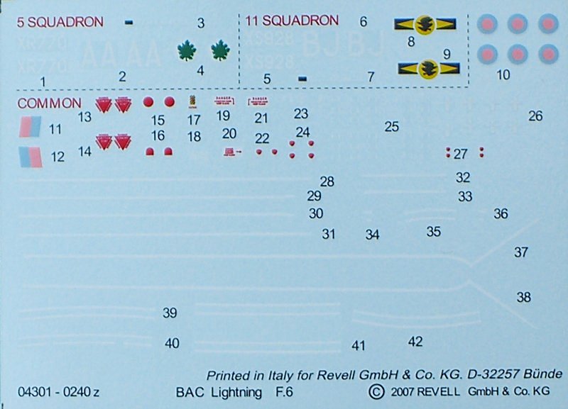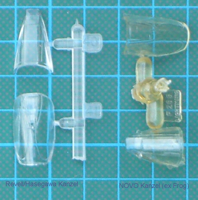 Ende der 60er gab es einen Kooperationsbausatz zwischen Hasegawa und Frog der BAC Lightning F.Mk. 6. Damals war es noch bezahlbar zwei separate Formen zu erstellen. Die Form von Frog wanderte in den 70er Jahren in die UdSSR. Sie wurde zwischenzeitlich mehrmals wieder aufgelegt so auch bei Revell. Hasegawa hat die Form in den 80er Jahren leicht überarbeitet. Es kamen u.a. ein rustikales Cockpit, die Öffnungen für die Kanonen incl. Beulen, ein paar Lufteinläufe und –auslässe sowie weitere Modifikationen hinzu. In der Summe blieb es aber ein Bausatz der 60er Jahre.