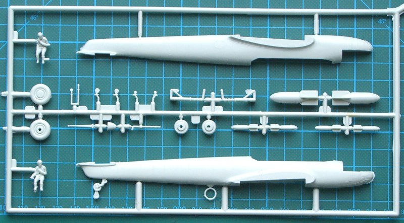 Das Cockpit ist rustikal. Es gibt eine Instrumentendecal, einen Pilotensitz und zwei Figuren. Auch ansonsten gibt es hier wenig Teile zu verbauen. Im Ergebnis erhält der Modellbauer, dass sehr schnell nach Messerschmitt Bf 110 aussieht.