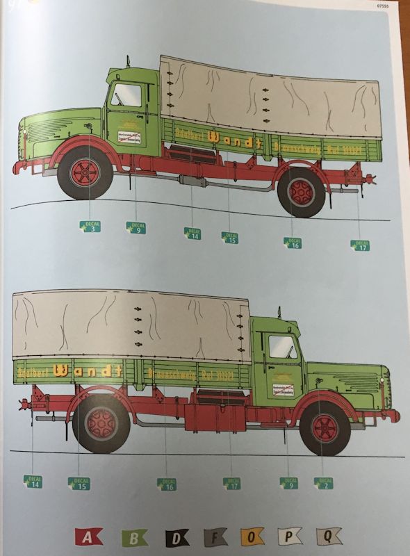 Die Plane kann abgenommen werden, so dass es sich lohnen dürfte auch die als Holz feingemaserten Innenteile der Ladefläche zu bemalen. Der Einsatz einer selbstgemachten Stoffplane ist erwägenswert. Der Aufbau ist vorhanden und ein Aufdruck auf der Plane ist nicht vorgesehen.