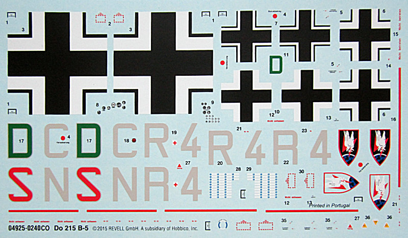 Fazit: Danke an Revell, das sie zumindest durch die Koopperationen die 48er nicht völlig vergessen. Die Do 215B-5 ist ein eher seltener Vogel, aber es bieten sich doch verschiedene interessante Möglichkeiten für Nachtjäger, Verbindungsflugzeuge und Aufklärer. Einiges Zubehör gibt es inzwischen, wenn auch vornehmlich von Eduard. Optionen für andere Bemalungsvarianten sucht man allerdings vergebens und mit Büchern und sonstigen Materialien für die eigene Recherche sieht es auch nicht sonderlich gut aus.