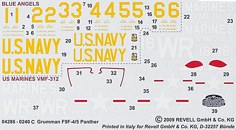 Bausatz: Dieser Bausatz stammt im Ursprung aus dem Hause Matchbox und die Form ist schon ein paar Jahre im Einsatz. Die traditionelle Revell-Schüttelbox enthält drei Navy-blaue Spritzlinge, eine Spritzgusskanzel, eine gut gemachte Bauanleitung und einen fehlerfreien Decalbogen.