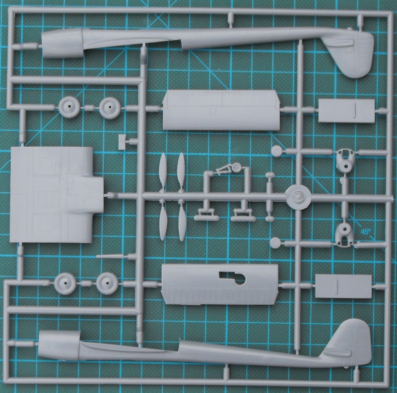 Bausatz: Wie schon erwartet handelt es sich hier um einen Bausatz, der seinen Ursprung in Tschechien hat. Im Ursprung erschien der Bausatz unter dem Label "Condor", wurde dann mit Resinteile aufgewertet und unter MPM vermarktet. Vor einigen Jahren gab es auch eine Auflage bei Italeri. Nun hat sich Revell des Kits angenommen. Wer sich die Teile ansieht, der stellt fest, dass es nun sog. "Locations" gibt. Kurz gesagt ein Teil hat eine Bohrung und das Gegenstück einen Stift. Die sind jetzt vorhanden und auch die Bohrung für die Abwehrbewaffnung ist nun in der Verglasung.