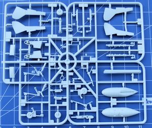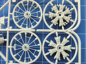 Weiter geht es mit dem Fahrwerk. Die Räder sind lackierfreundlich in Reifen und Felgen getrennt. Die Fahrwerksbeine sind jeweils ein Teil. Sehr schön! Klappen und die Kabinenhaube sind in doppelter unterschiedlicher Ausführung vorhanden. Es kann nämlich auch die Standardausführung der FW 190 A-8 gebaut werden.