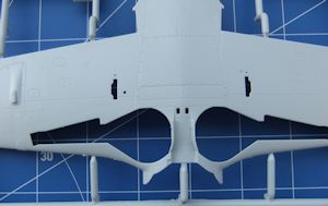 Die Gravuren sind ebenfalls sehr schön negativ und vollständig. Alle Ruder und Landeklappen können variabel montiert werden. Die Antennenstärke des FuG 218 Neptun J3 geht für diesen Maßstab in Ordnung. Die seitlichen Stangen sind recht dünn, und bruchanfällig. Also empfiehlt es sich, die Anlagen erst nach dem vollständigen Zusammenbau incl. Lackierung vorsichtig zu montieren.