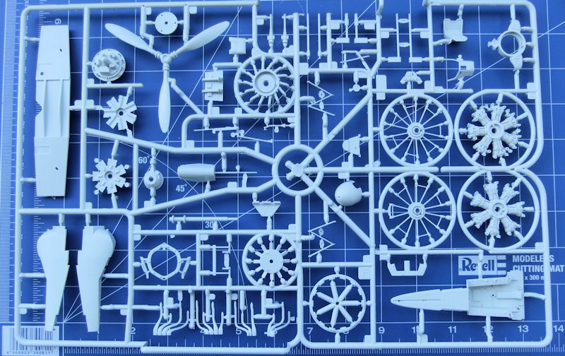 Eine kleine Sensation ist die Nachbildung des BMW-801 Doppelsternmotors. Solch feine Strukturen wie bei den Zylindern des Motors habe ich selten gesehen. Auch das die Hauptbauteile aus einem Stück gefertigt sind ist Klasse. Die verzwickten Abgasrohre sind an den Enden selbstverständlich offen. Es wäre schade, den Motor zu verstecken. So sehr die meisten Modellbauer darauf bedacht sind, eher die elegante Linienführung der Focke Wulf 190 zum Tragen zu bringen, dieser Motor sollte wenigstens teilweise gezeigt werden. Eventuell kann sich die Fa. Revell ja durchringen und den Motor mit einem kleinen Transportgestell als extra Bausatz erscheinen lassen.