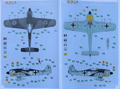 Das Cockpit ist recht ansehnlich gestaltet und eine gute Idee, ist die Beilage des Gurtzeugs des Piloten als Abziehbild. Man kann diese nur ausschneiden, die Kanten nachmalen und sie dann wie Ätzteile verwenden. Für die Armaturen gibt es jede Menge farbig gedruckte Instrumente. Werden sie nach dem Ablösen von dem Trägerpapier mit Weichmacher richtig behandelt, hinterlassen sie auch out-of-the-Box einen realistischen Eindruck.