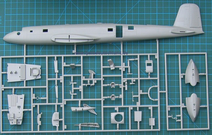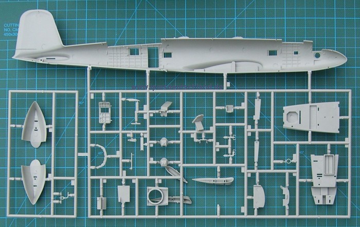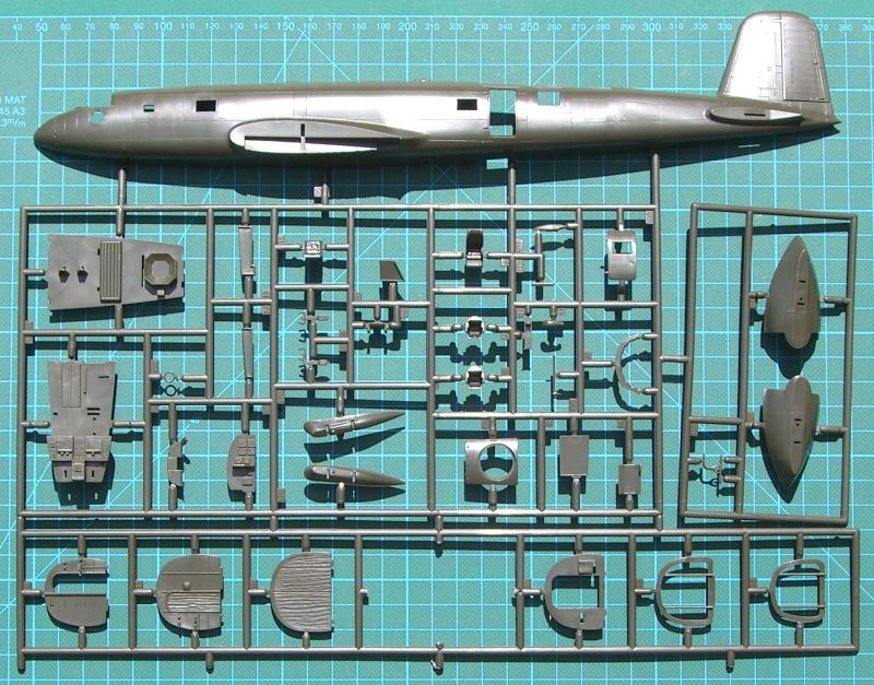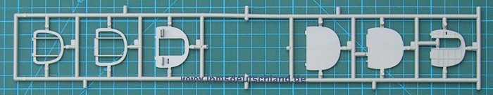 Der Flugzeugführerraum (= Cockpit) besteht aus einer Vielzahl von Einzelteilen. Der Boden sowie die Seitenwänden sind gut strukturiert und können gut gemalt werden. Gleiches gilt für die Instrumente. Sicherlich wird es auch dafür noch Decals geben. Die restlichen Details sind für 1:72 ebenso absolut in Ordnung. Für die tschechische Zubehörindustrie gibt es da nicht viel zu tun. Der Heckbereich unter dem Abwehrstand im Bereich der Rumpftür glänzt auch durch eine Menge Details. Dort sind auch die Rumpfseiten, wie im vorderen Bereich, strukturiert. Da die Tür offen montiert werden kann, bleibt es dem Betrachter auch nicht verborgen. Der Bereich des Heckstandes ist ebenso wie beim A-Stand durch einen Deckel verschlossen, der nicht unbedingt eingeklebt werden muss. Die Rumpffenster werden von innen eingeklebt.