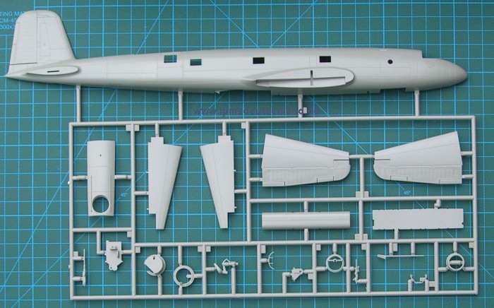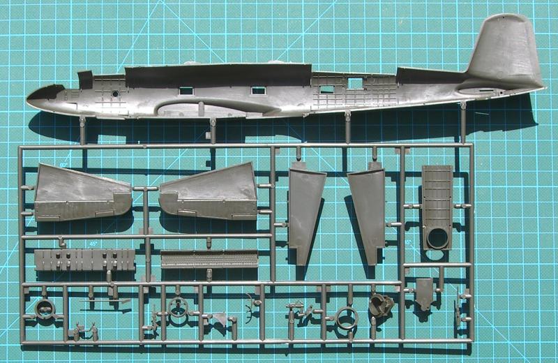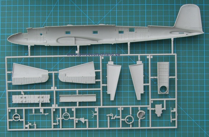 Das Seitenleitwerk sieht nach Fw 200C aus. Die Stoffstruktur für die Ruder ist vielleicht für 1:72 etwas übertrieben, jedoch von der Sache völlig richtig. Für die Bodenwanne gibt es auch separate Bombenklappen, die bei der C-8 jedoch nicht offen montiert werden müssen, denn Bomben gab es darin nicht mehr (obwohl diese dem Bausatz beiliegen).