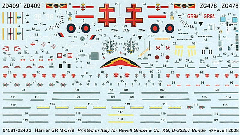Die Abziehbilder sind seidenmatt und versatzfrei auf blauem Trägerpapier gedruckt. Der vergleichsweise kleine Bogen erlaubt die Darstellung von zwei Bemalungsvarianten