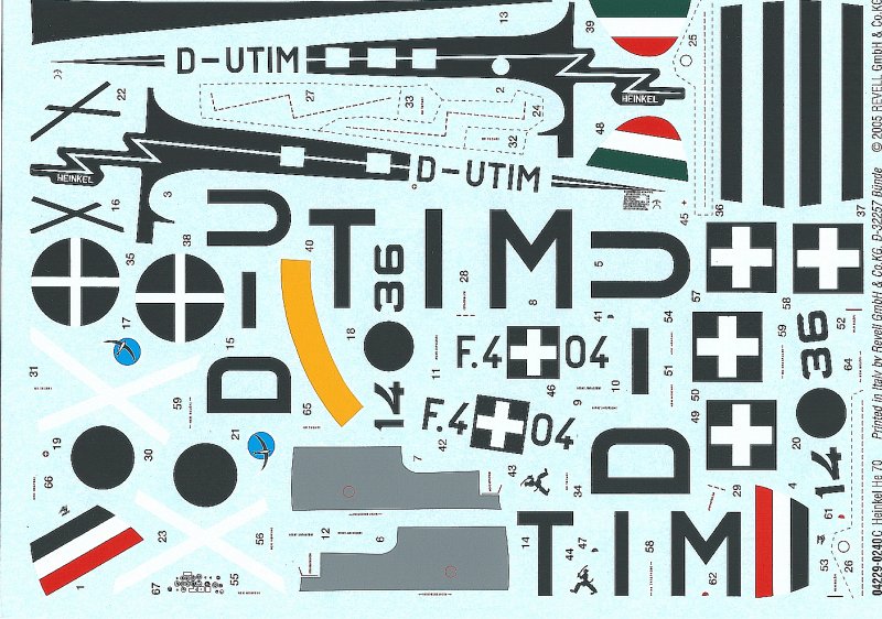 Revells momentan auslaufender Bausatz 04229 stammt aus einer Matchbox-Form. Dieses war eines der letzten eigenen Flugzeugmodelle dieser berühmten Spielwaren-Marke gewesen. Bei genauerem Hinsehen kann man dies noch heute an der nunmehr Revell gehörenden Form erkennen. Die in der Rumpfinnenseite eingravierte Aufschrift läßt noch teilweise die Worte "made in China" erkennen, was dafür spricht, dass die He 70 erst nach dem Aufkauf der Marke Lesney durch die Fa. Universal Toys aus Hong Kong ins Sortiment aufgenommen wurde.