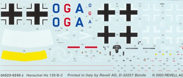 Nachdem 2001 von Hasegawa die erste Hs129 B herauskam, erscheint jetzt bei Revell die B-2. Es sind die bekannten Teile vorhanden. Nur die Decals, Bauanleitung und Karton sind von Revell. Günstig ist natürlich der Preis von 16,49 €!