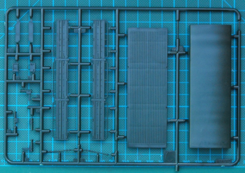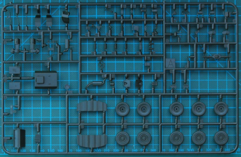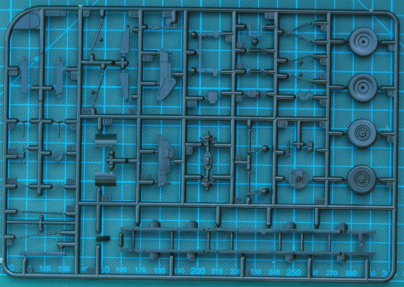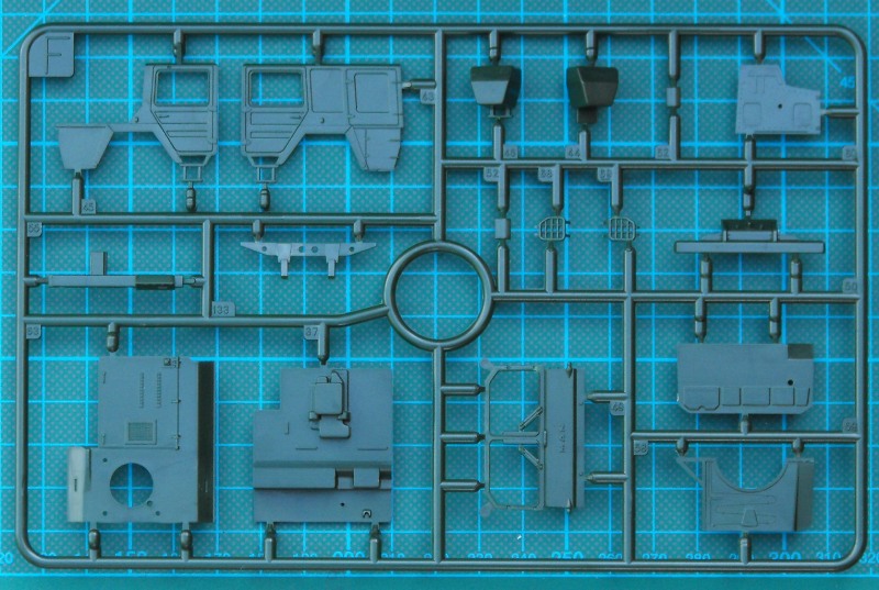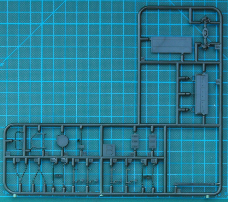 Nach der Meckerei kommen wir nun zu den positiven Sachen. Die revelltypische Schüttelbox enthält sechs dunkelgrüne Spritzlinge, ein streifen Klarmaterial, einen kleinen Decalbogen und eine Bauanleitung die zwar übersichtlich ist, jedoch etwas verkleinert wirkt. Die Teilenummern sind etwas winzig geraten. Der Bausatz selbst ist auf der Höhe der Zeit. Es gibt in 1/72 Details satt, auch wenn der Kran in 1/72 etwas schlicht aussieht. Im "normalen Leben" ist er eh mit einer Plane abgedeckt. Die Bauanleitung bietet während des Baus einige Alternativen. Es ist daher bestimmt nicht falsch, wenn man sich den Bausatz mehrmals kauft.