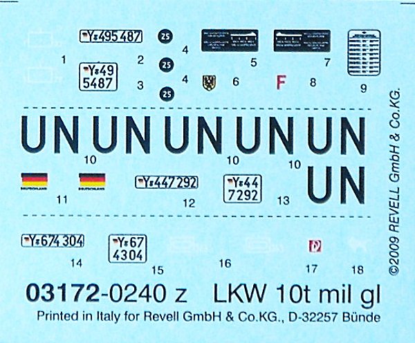 Bausatz: Vor vielen Jahren hatte Revell mal die "aktuellen" Lkw's der Bundeswehr in 1/35 herausgebracht. Nun erscheint erstmals ein Fahrzeug aus dieser Reihe in 1/72. Eigentlich sollte man meinen, dass man im Hause Revell aus Fehlern lernen könnte. Kann man aber scheinbar nicht, denn es wurden fast alle Fehler/Unzulänglichkeiten vom 35er Modell übernommen. Einiges hat man korrigiert anderes ignoriert. Wer Zeit hat, der kann ja mal seinen Bausatz hiermit (Link) vergleichen. Schade eigentlich, denn eine korrekte Form kostet auch nicht mehr.