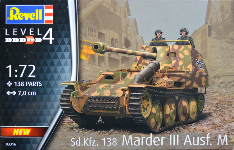 Bausatz: Seit dem Aufkauf der Toxso-Spritzgussformen durch Revell werden immer mehr Bausätze veröffentlicht, die in Europa bisher unbekannt waren. Hierzu gehören auch der Marder III und die Grille; zwei Fahrzeuge, die bisher nur von osteuropäischen Herstellern im Short-Run-Verfahren oder, im Falle des Marder III, vor fast 50 Jahren von ESCI angeboten wurden.