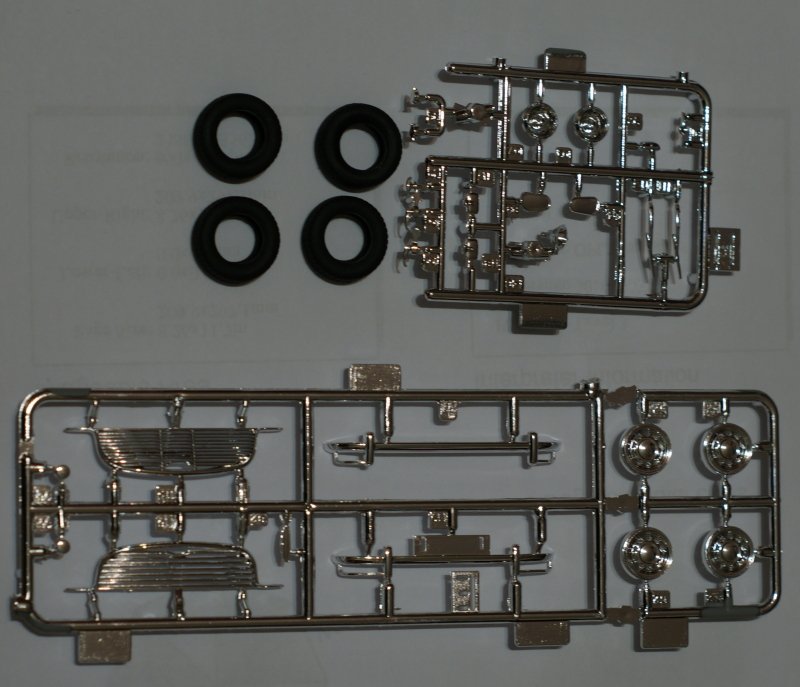Zum Bausatz selber: DieBauanleitung führt in 51 Schritten mit insgesamt 130 Teilen zum fertigen Mini. Die Teile sind an fünf grauen, zwei verchromten und einem klaren Spritzling zu finden. Separat liegen die eigentliche Karosserie und die Reifen bei. Die Teile selbst sind nach meiner Meinung einwandfrei.