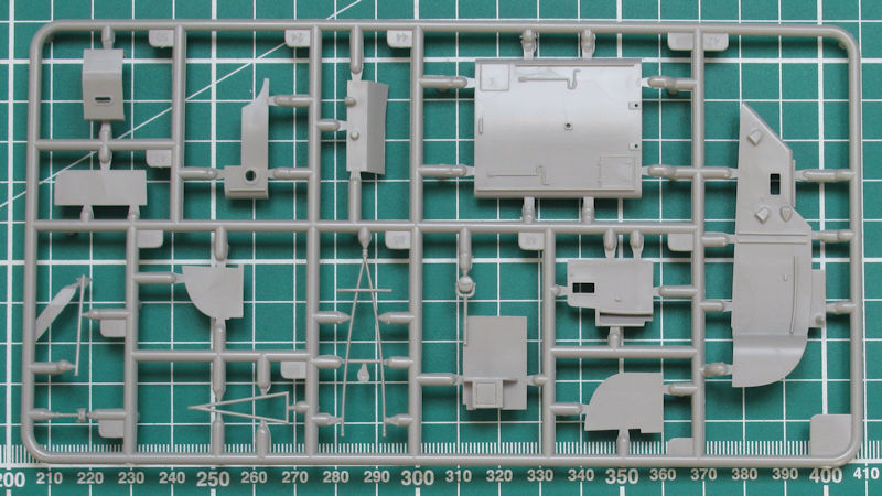 Gemeinsam mit dem Rumpf soll man gleichzeitig den aus vier Teilen bestehenden Ständer zusammenbauen. Daher kann man das Modell während des Baus sehr gut abstellen.