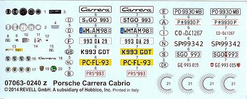 Bemalungsvarianten: Erwähnenswert bei diesem Bausatz sind die hervorragenden Decals die zwei Ausstattungsvarianten (Tacho und Felgen) zulassen sowie Abziehbilder mit internationalen Kennzeichen (D, GB, F, NL, I, CH, B, A, E, N, S).