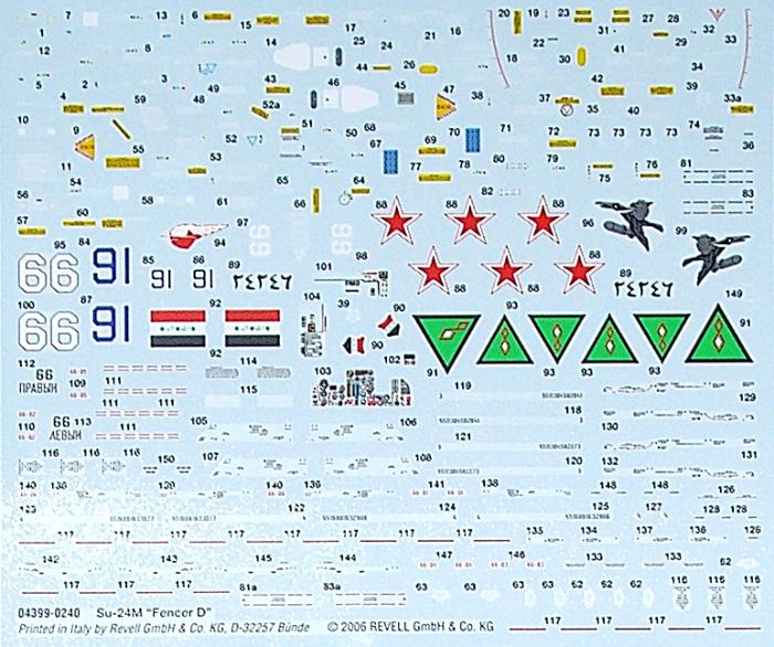 Bausatz: Hier haben wir es mit einem alten Bekannten zu tun. Die Su-24M erschien Anfang der 90er Jahr erstmal bei Dragon und vor einigen Jahren tauchte der Bausatz bei Zvesda auf(einziger Unterschied: alle Dragon-Zeichen waren eliminiert). Nun hat Revell bei Zvesda Spritzlinge eingekauft und mit vernünftiger Bauanleitung sowie Decals versehen. Das Cockpit ist recht einfach. Von NEOMEGA (z.B. bei Aero-Special) gibt es ein sehr schönes Resincockpit, welches die Bausatzteile direkt ersetzen kann.