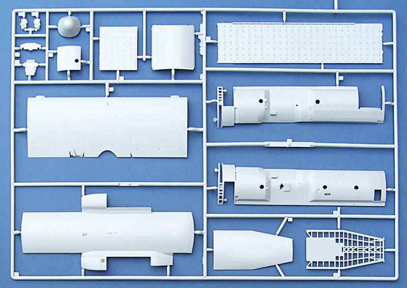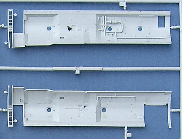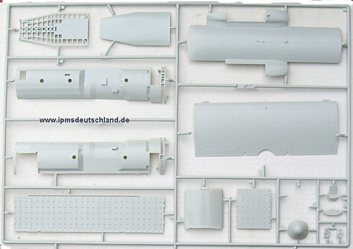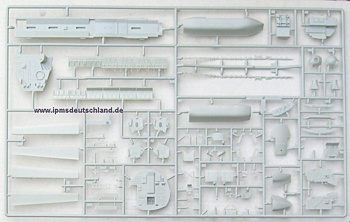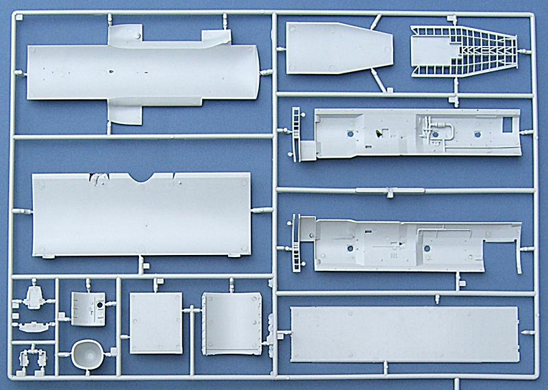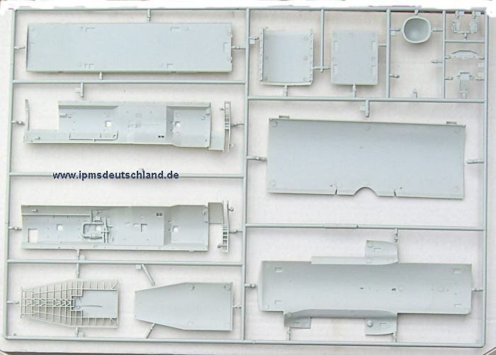 Bausatz: Hierbei handelt es sich um den sog. 1. Shot. Dieser ist auch noch Gegenstand von Korrekturen und Verbesserungen der Details. Es fehlen hier noch Gravuren, die ergänzt werden. Die Stellen für die Auswerfer sollen auch noch optimiert werden. Einiges ist schon ersichtlich: Der Bausatz hat eine komplette Inneneinrichtung, zahlreiche Türen und die Heckklappe lassen sich optional geöffnet darstellen und die Außendetails sind sehr fein und reichhaltig.